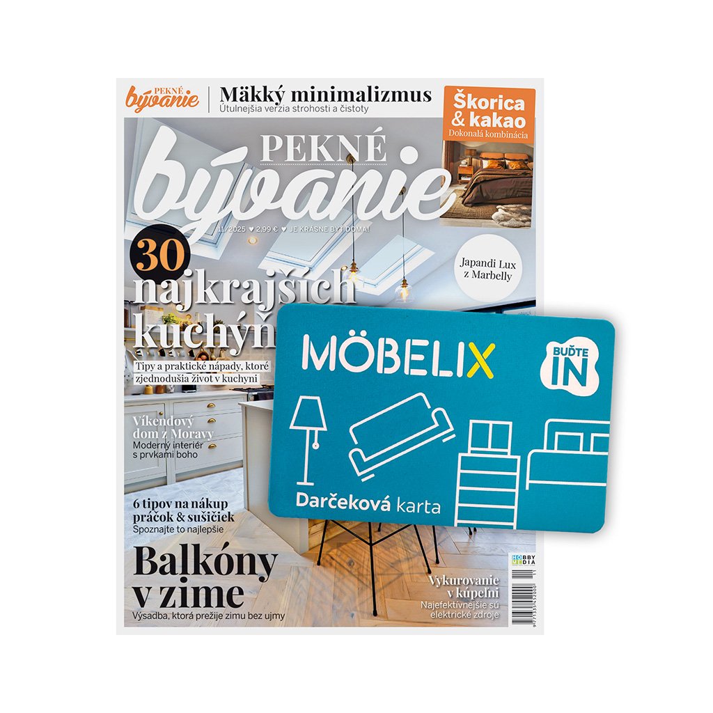 Dvojročné predplatné Pekné bývanie + darčeková karta Möbelix s kreditom 20 €